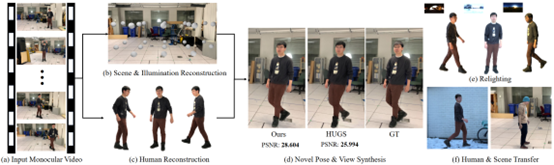动态人体建模与神经渲染:基于NeRF的动态人体重建任务通常利用输入的视频序列学习人体的神经表达方式,并对人体进行隐式重建。 通过结合体渲染技术,基于输入相机与人体姿势参数生成指定视角与动作的人体渲染图。 尽管目前已有大量工作针对该方向展开研究,但是仍存在训练耗时长、渲染质量低、渲染速度慢等问题。